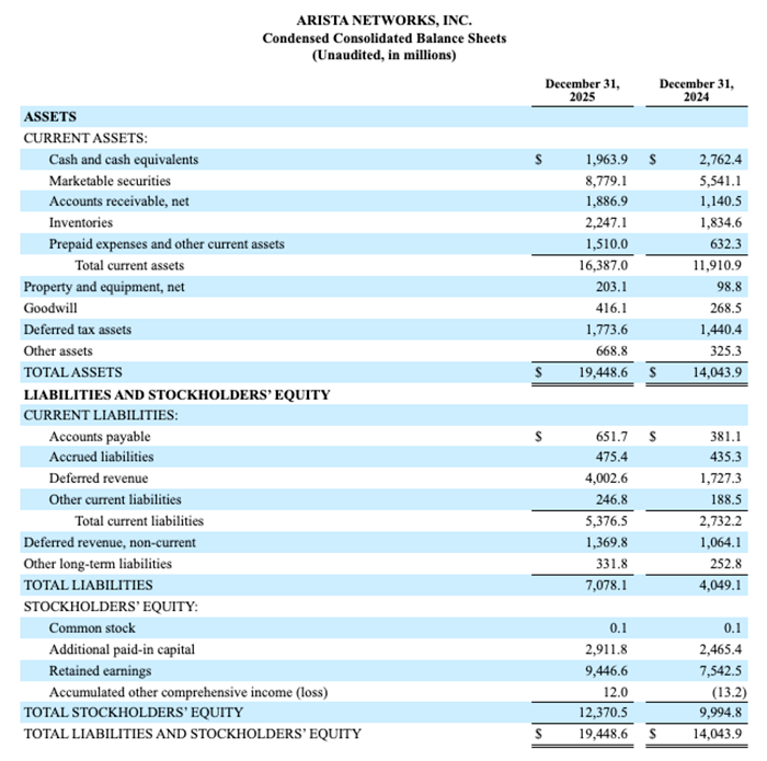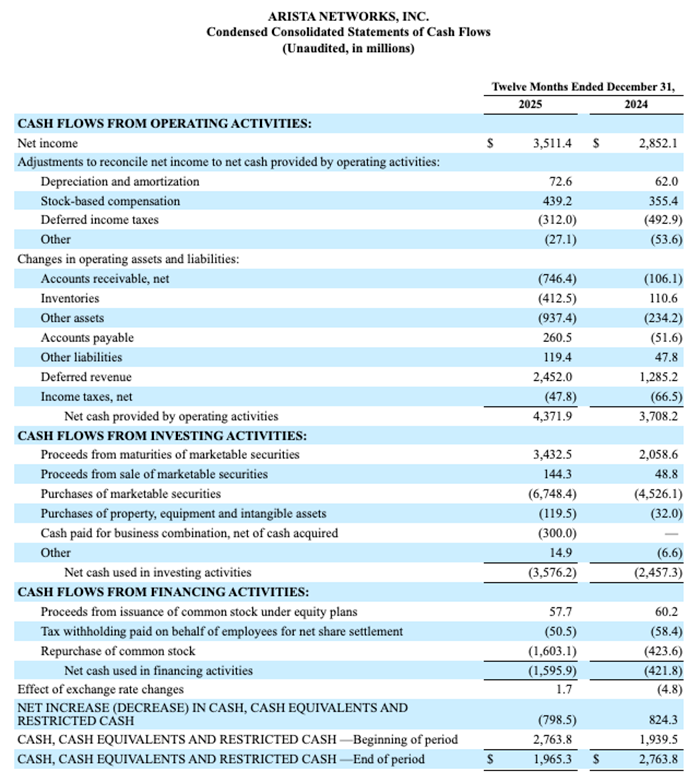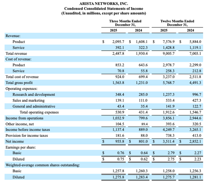Arista Networks, Inc. Reports Fourth Quarter and Year End 2025 Financial Results