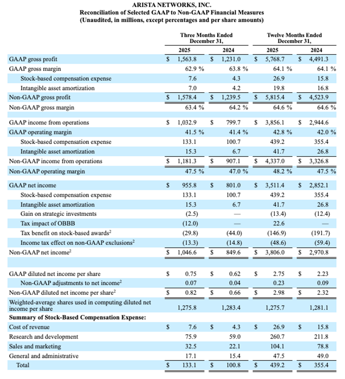 SANTA CLARA, Calif.- February 12, 2026 -- Arista Networks, Inc. (NYSE: ANET), an industry leader in data-driven, client-to-cloud networking for large AI, data center, campus, and routing environments, today announced financial results for its fourth quarter and the full year ended December 31, 2025.