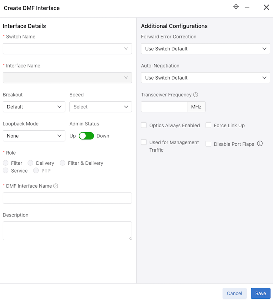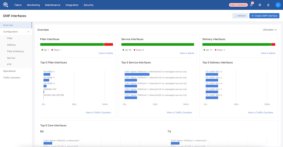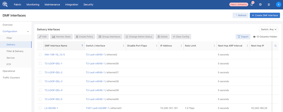 All fabric-wide configuration settings required in advanced use cases for deploying DMF policies appear in the new DMF Features Page.
