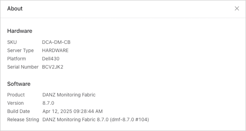 About: Open an information window providing details about the DMF Instance.