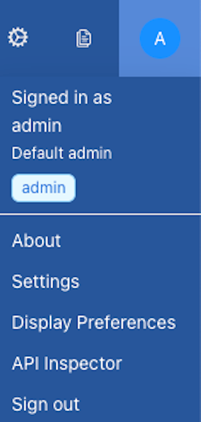 - Admin (A):A page that displays or edits user preferences; the ability to change the password or sign out. Set Display Preferences, enter the API Inspector, change Settings, and view About details.