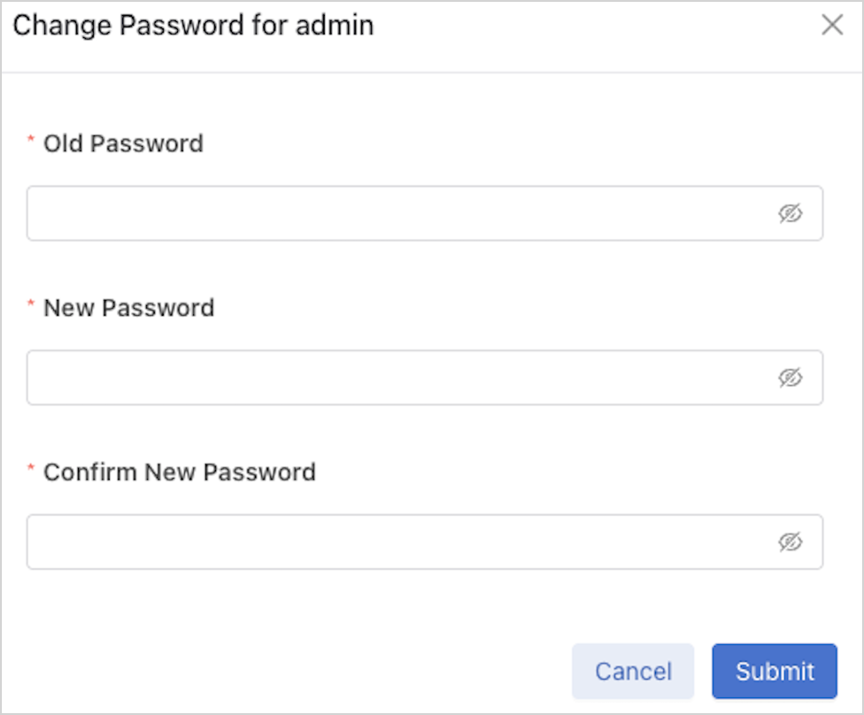 - Change Password: Change the existing user account password.