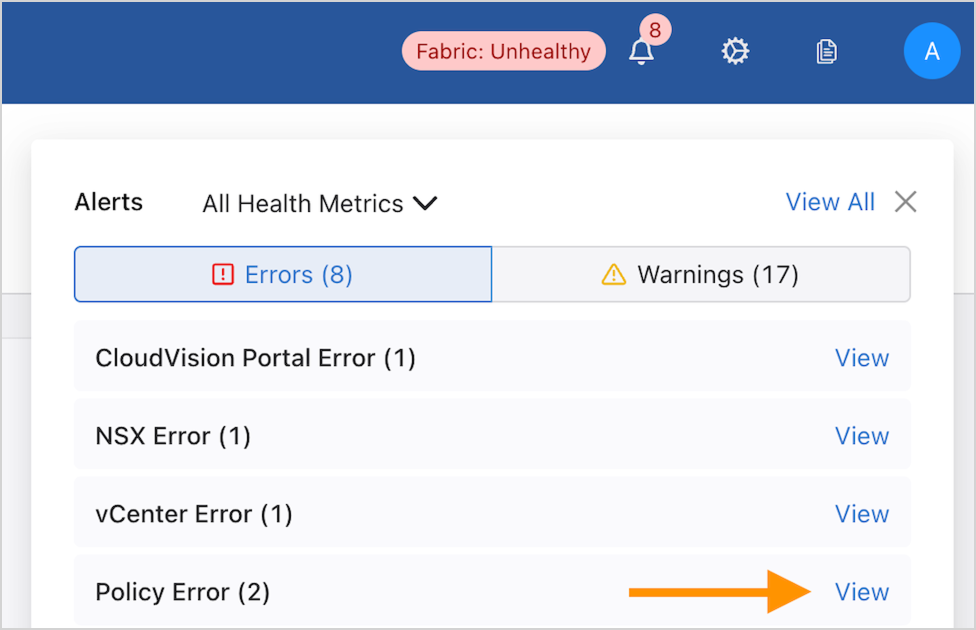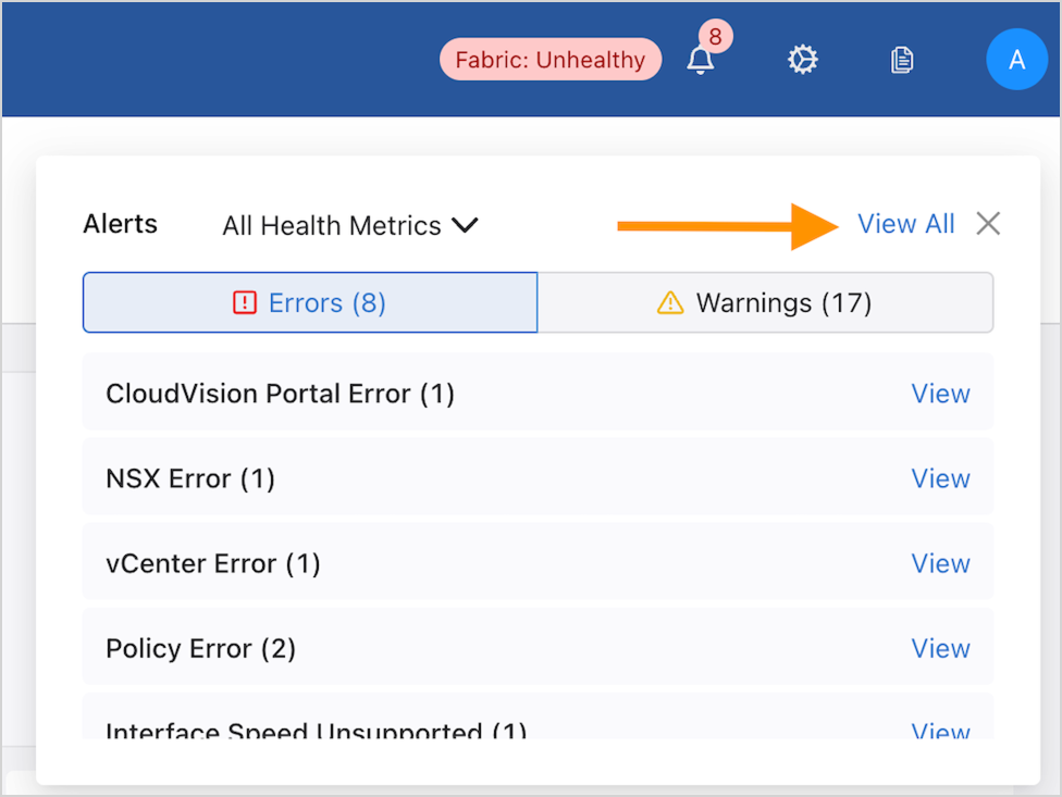 Note: Select or deselect both Error and Warning to view all alerts.