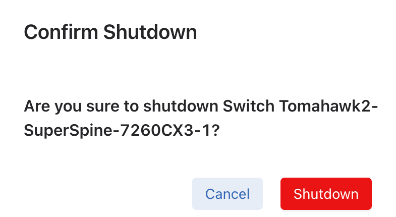 - Shutdown: Sets shutdown property of the switch config to true, thus shutting down the switch.