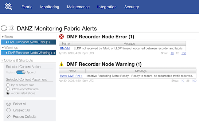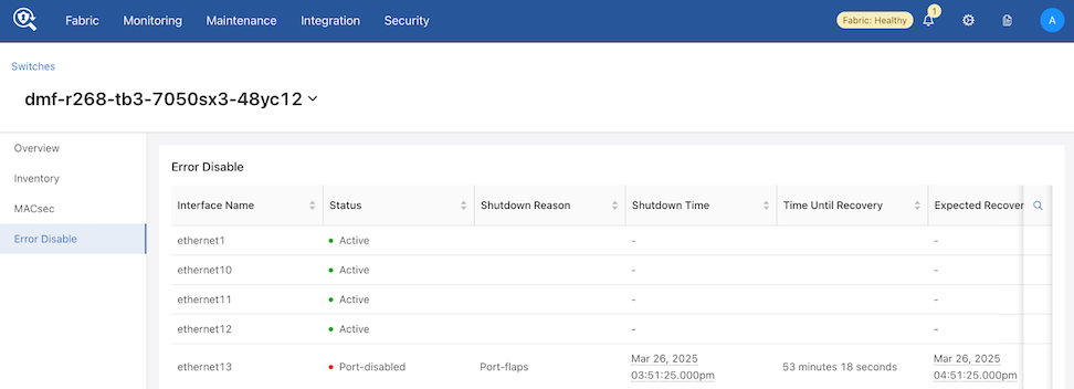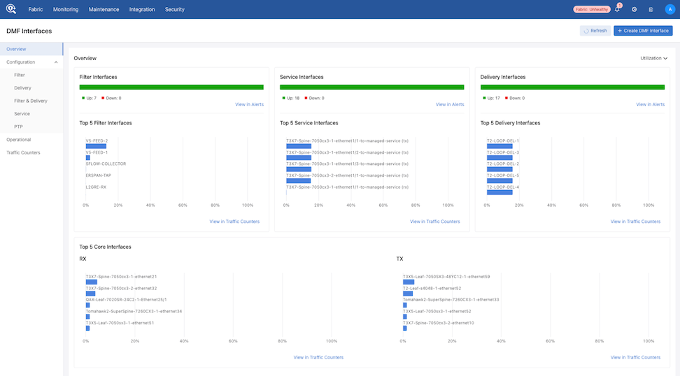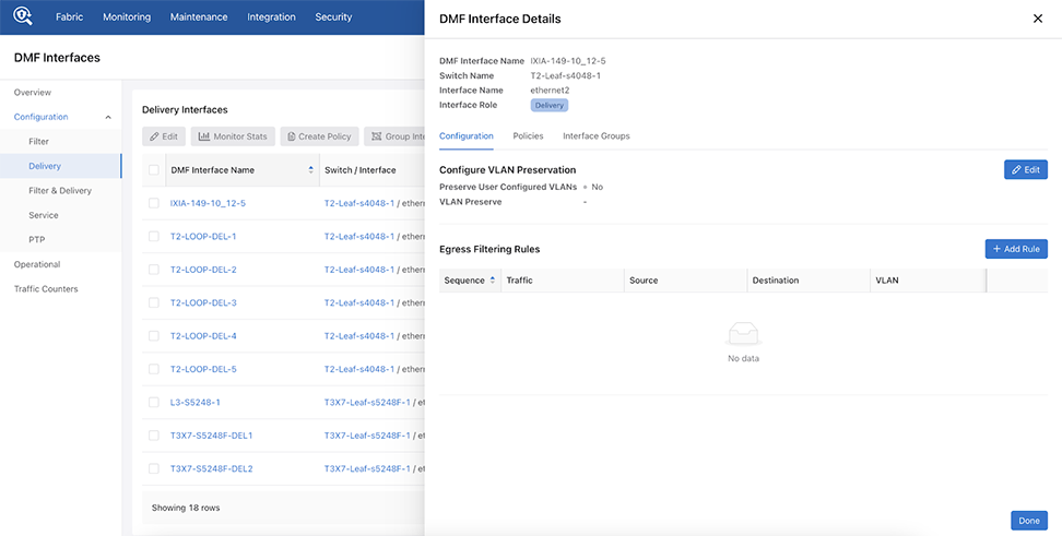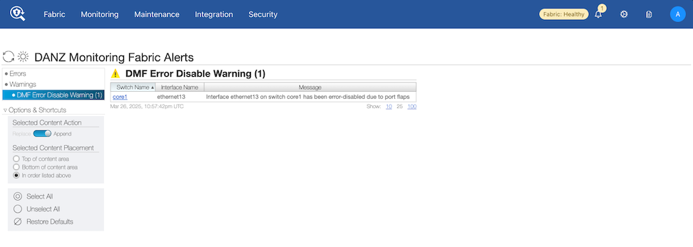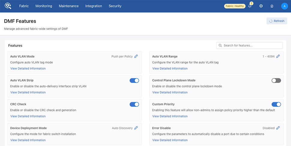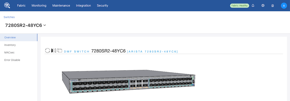 DANZ Monitoring Fabric (DMF) 8.7 introduces an updated Switches dashboard. A header and tabulated layout enable observation of different aspects of the installed switches and provisioning new switches, all within the same dashboard.