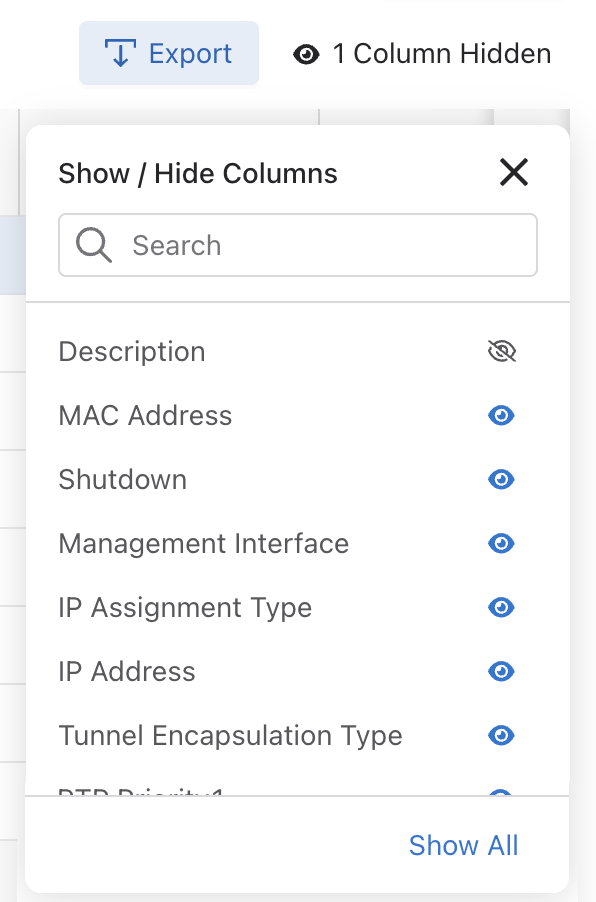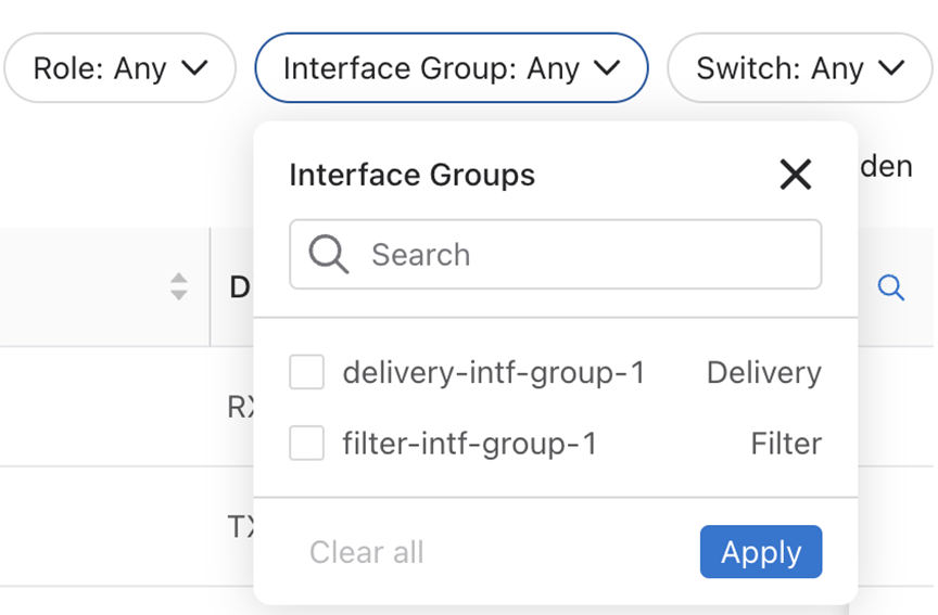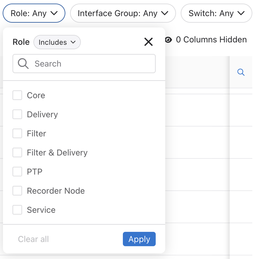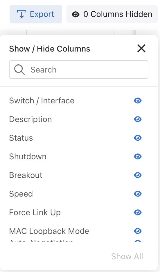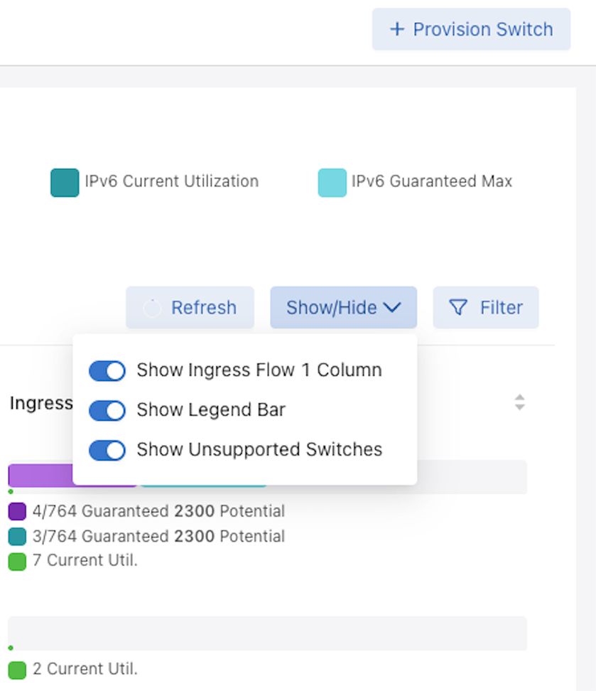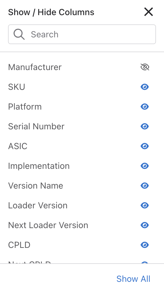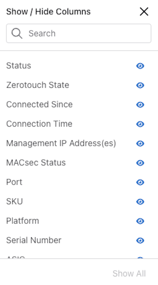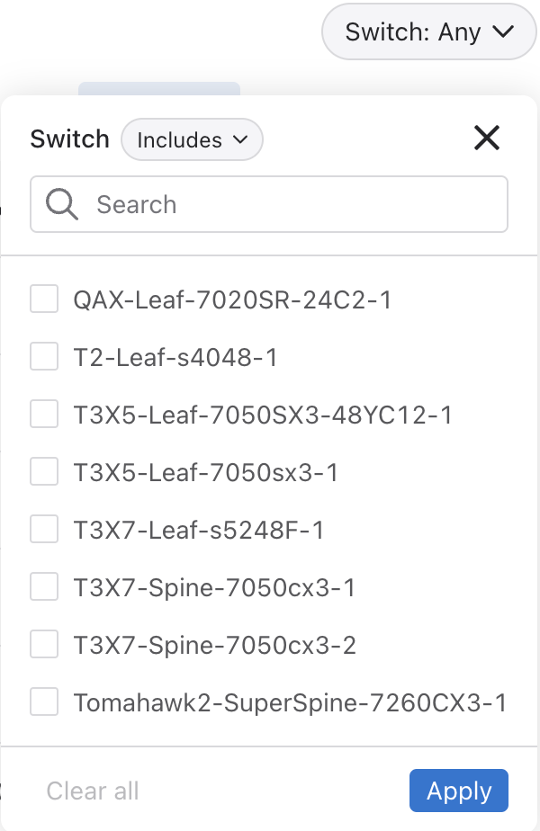 - A Select drop-down to conveniently view the inventory of other switches and allows text and search.