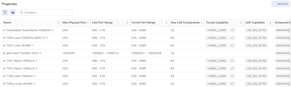 Properties Dashboard: A sortable display of all switch properties currently installed in DMF.
