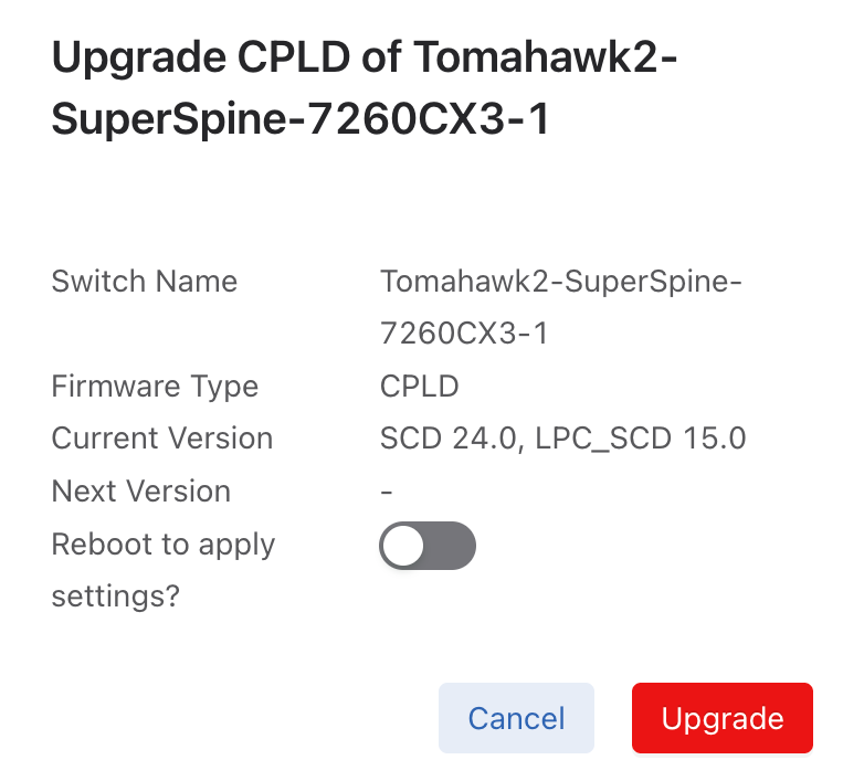 Reboot is disabled unless one switch is selected and the selected switch is a ZTN device. For a Chassis, select the Module Type and the Slot to reboot.