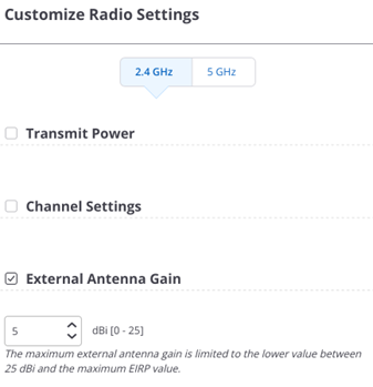 You can turn individual Access Point (AP) radios on or off. To understand the motivation for this, consider a floor where Wi-Fi APs with both 2.4GHz and 5GHz radios are deployed. Since the 2.4GHz signal propagates better than 5GHz and APs are often deployed to provide high 5GHz RSSI all over the floor, some areas on the floor end up having an “excess” of 2.4GHz signal, i.e., these areas get high RSSI signal from multiple 2.4GHz AP radios. This could cause interference in those areas because the 2.4GHz band has only three non-overlapping channels. You can then simply turn off the 2.4GHz radio for APs near these high 2.4GHz interference spots on the floor.