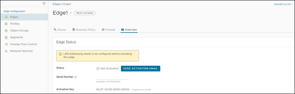 Edge Auto-activation allows you to activate Edges by powering on the Edges and connecting them to the Internet.