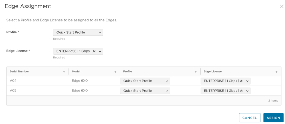 You must assign a profile and a license to the Edges. For instructions, see Assign Profile and License to Edges.