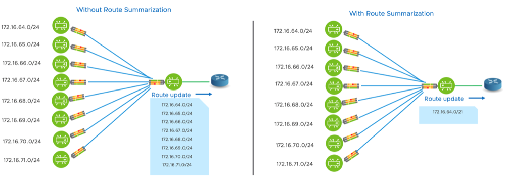 Route summarization is a functionality introduced on the VeloCloud SD-WAN Edge and the Gateway.