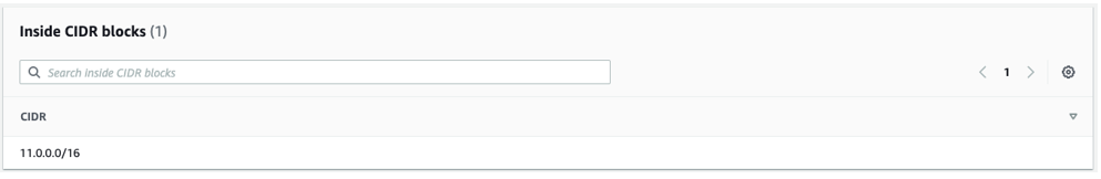 - In the global "Inside CIDR blocks," the CNEs will get their respective Inside CIDR blocks defined. Enter the CIDR in the appropriate text box, as shown in the following image.