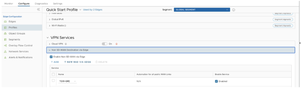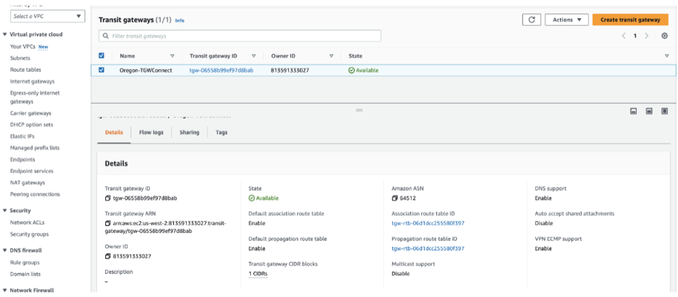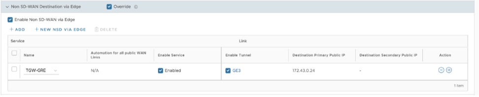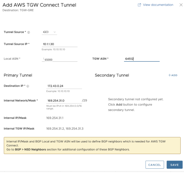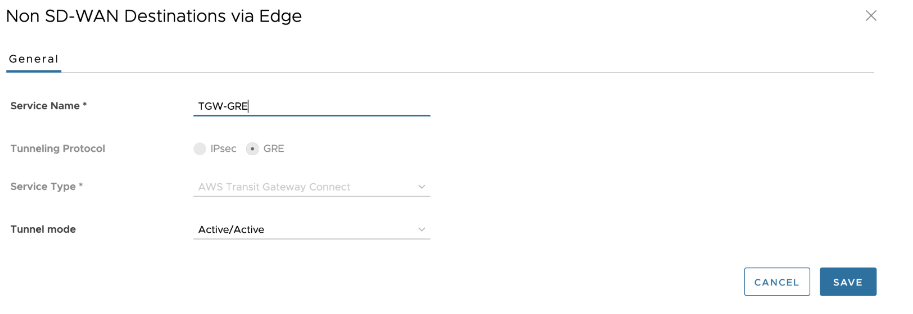 Configure Edge for Amazon Web Services (AWS) Transit Gateway (TGW) Connect Service