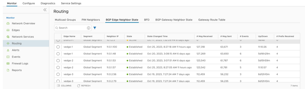 - Use to verify that the BGP peer relationship has been established with the Neighbor IPs configured.