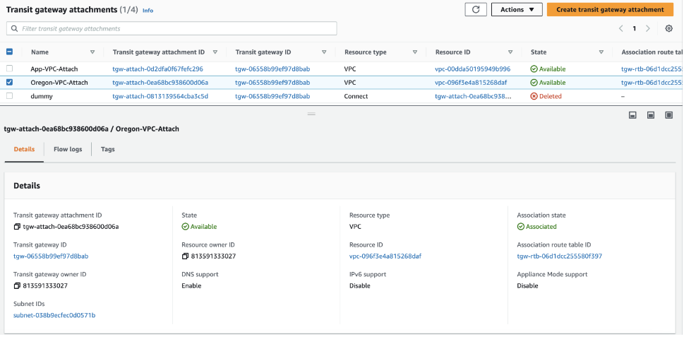 If the Policy has been configured correctly, the Attachment should show that it has been made part of the “SDWAN” Segment. Note that the Attachment policy rule number being used is shown, as is “NO_ENCAP” for the Connect protocol.Figure 30. View Attachment Details