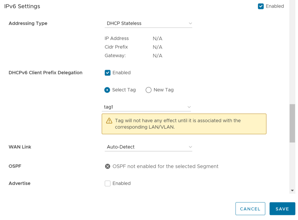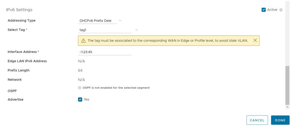 - If the routed Interface is activated with the WAN overlay and attached with a WAN link, then the interface will be available for all Segments.