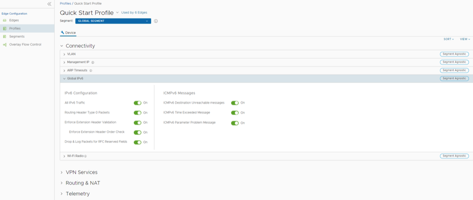 | Global IPv6 | Activate IPv6 configurations globally. See Global IPv6 Settings for Profiles. |