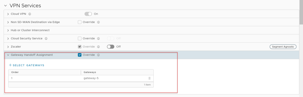 | Gateway Handoff Assignment | Allows to assign Partner Gateways for Profiles or Edges. In order for customers to be able assign Partner Gateways, the Partner Handoff feature must be activated for the customers. See Assign Partner Gateway Handoff. |
