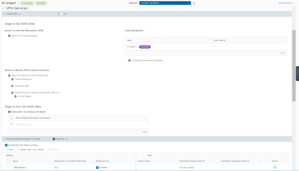 | Non SD-WAN Destination via Edge | Activate to establish tunnel between a branch and Non SD-WAN destination via Edge. See Configure a Tunnel Between a Branch and a Non SD-WAN Destinations via Edge.