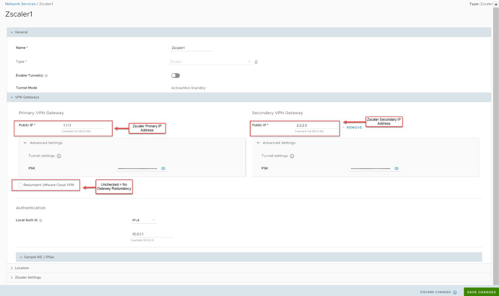 | Public IP | Displays the IP address of the Primary VPN Gateway. |