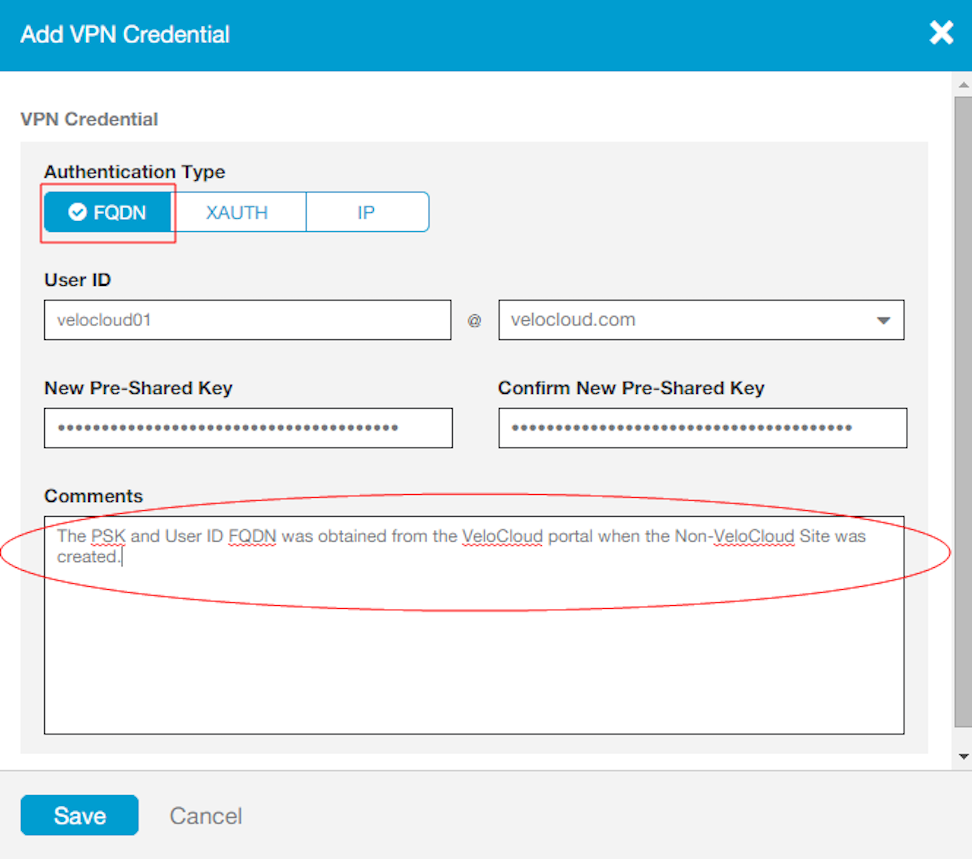 | PSK | The Pre-Shared Key (PSK) is the security key for authentication across the tunnel. The Orchestrator generates a PSK by default. If you want to use your own PSK or password, enter it in the text box. |