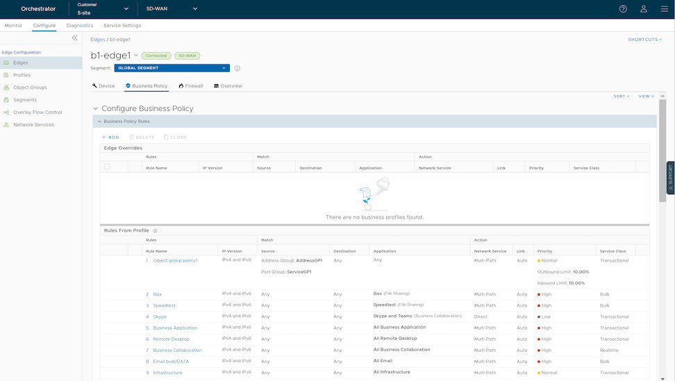 - Configure a Business Policy. For additional information, see Configure Business Policy.