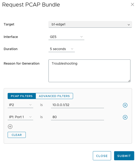 Target Choose the target Edge from the drop-down list. The packets are collected from the selected Edge.
