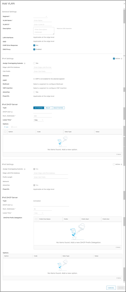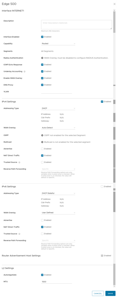 Edge LAN IPv4/IPv6 Address This option is available only if Assign Overlapping Subnets is set to Yes. Enter the LAN IPv4/IPv6 address of the Edge.