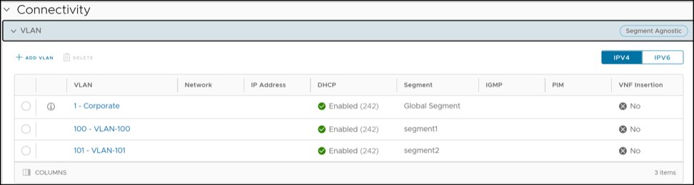 6. Select IPv4 or IPv6 button to display the respective list of VLANs.