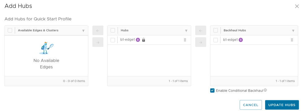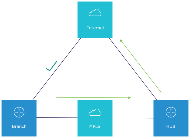 • Internet-BH-via-< backhaul hub name>- For Cloud-bound traffic going to Internet through Backhaul hub using business policy.