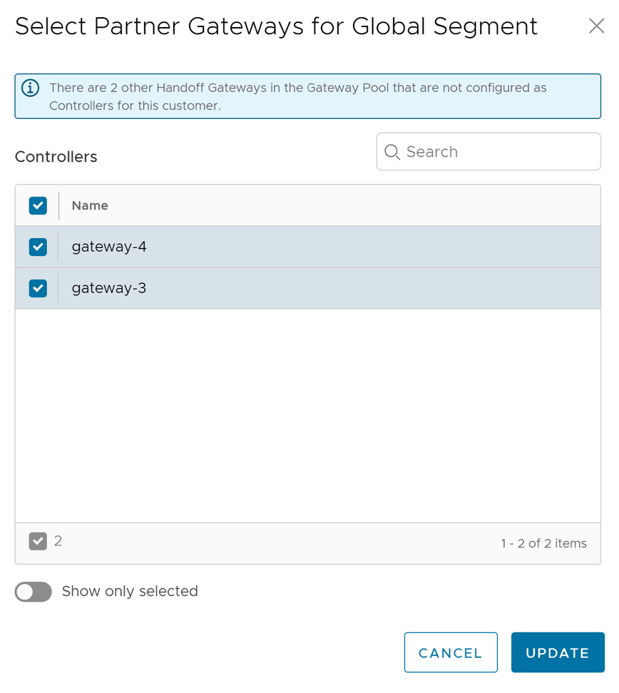 Controller Assignment Allows to assign Controllers for Profiles or Edges. In order for customers to be able assign Controllers, the Partner Handoff feature must be activated for the customers. See Assign Controllers.