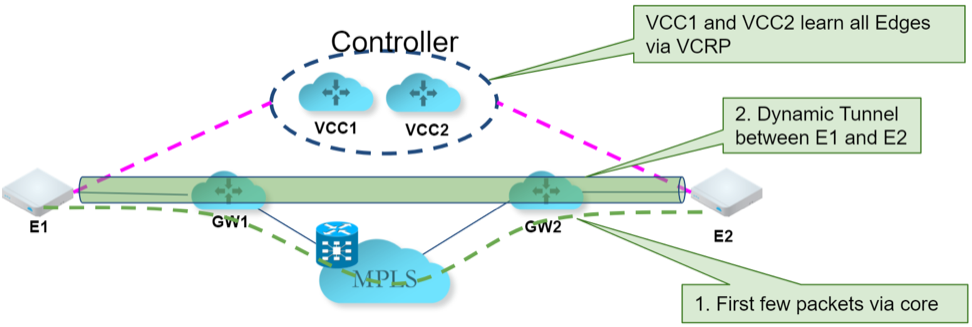• < Remote edge name>-via-DE2E- For VPN traffic flowing between the edges through direct VCMP tunnel.