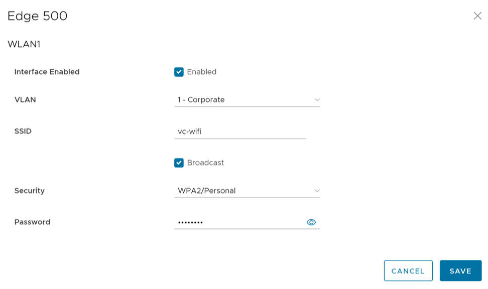SSID You can configure the Wi-Fi SSID details for the VLAN only at the Edge level.