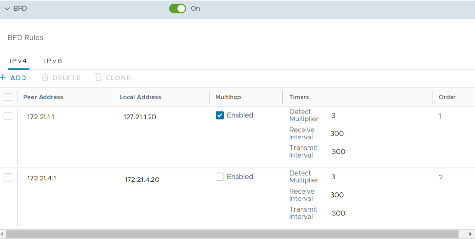 BFD Configure BFD settings for the selected Profile. See Configure BFD for Profiles.
