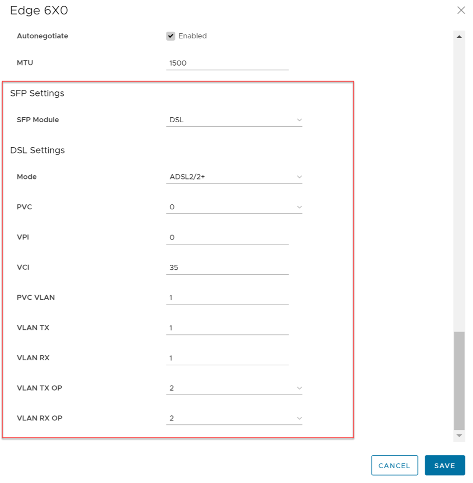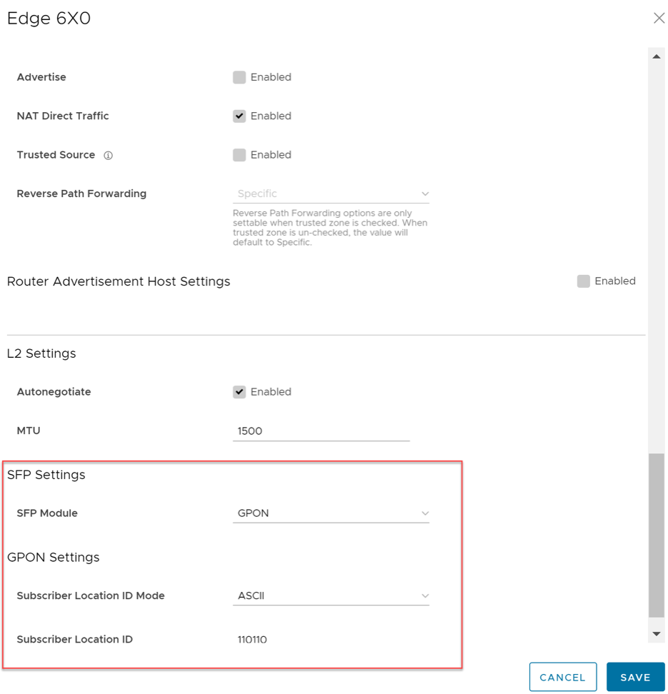 LAN Interfaces You can configure the LAN Interfaces only at the Edge level.