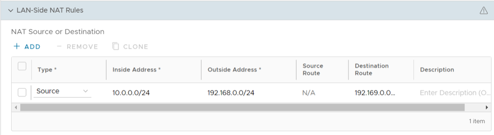 LAN-Side NAT Rules Allows you to NAT IP addresses in an unadvertised subnet to IP addresses in an advertised subnet. See LAN-Side NAT Rules at Profile Level.