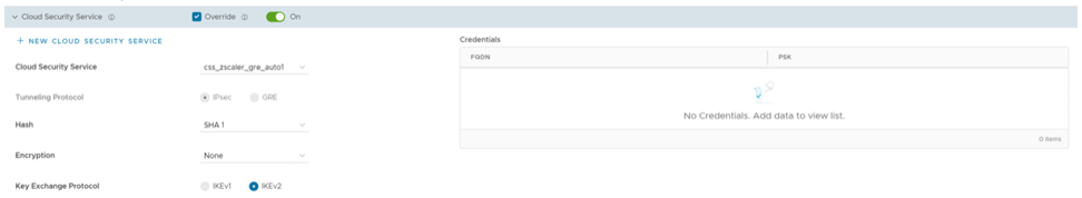 Cloud Security Service Enable to establish a secured tunnel from an Edge to cloud security service sites. This enables the secured traffic being redirected to third-party cloud security sites. See Cloud Security Services.