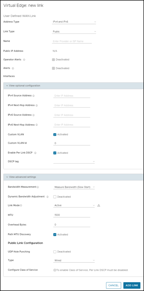 • The default value is Auto, which allows the Edge to automatically select the available interfaces on the global segment, in a specific order.