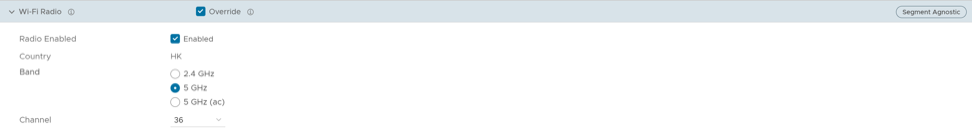 Wi-Fi Radio Activate or deactivate Wi-Fi Radio and configure the band of radio frequencies. For more information, see Configure Wi-Fi Radio Overrides.