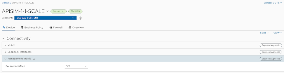 Management Traffic Configure the management traffic by selecting a source IP for the Edge to transmit the traffic to Orchestrator. For more information, see Configure Management Traffic for Edges.