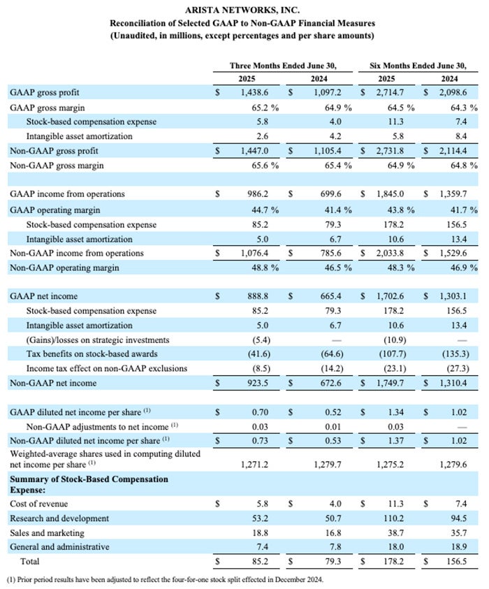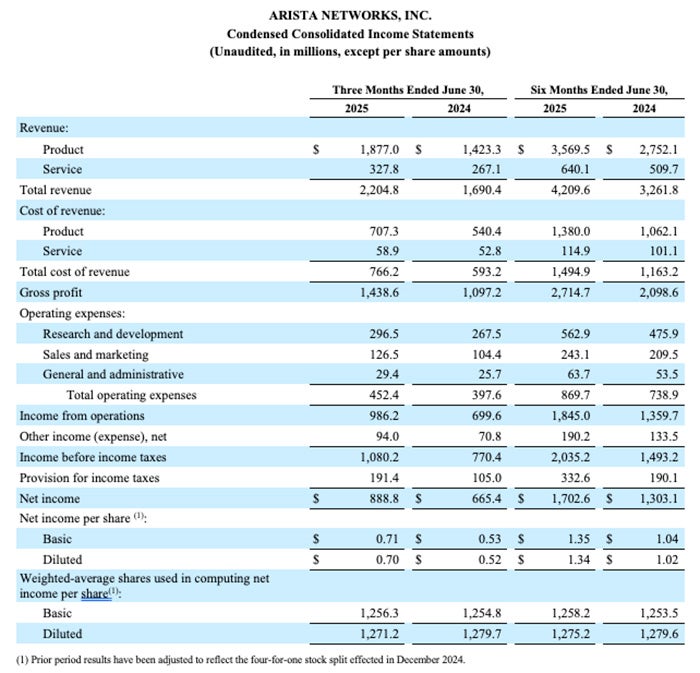Arista Networks, Inc. Reports Second Quarter 2025 Financial Results