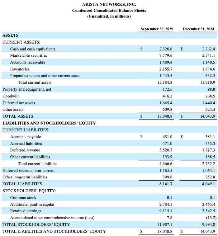 Arista Networks, Inc. Reports Third Quarter 2025 Financial Results