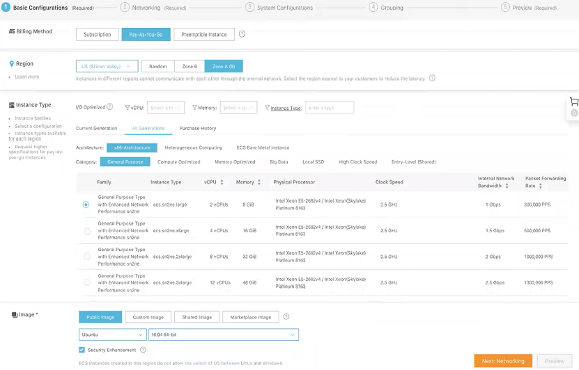 - On the Instances page, select Create Instance. The Custom Launch purchase page appears.