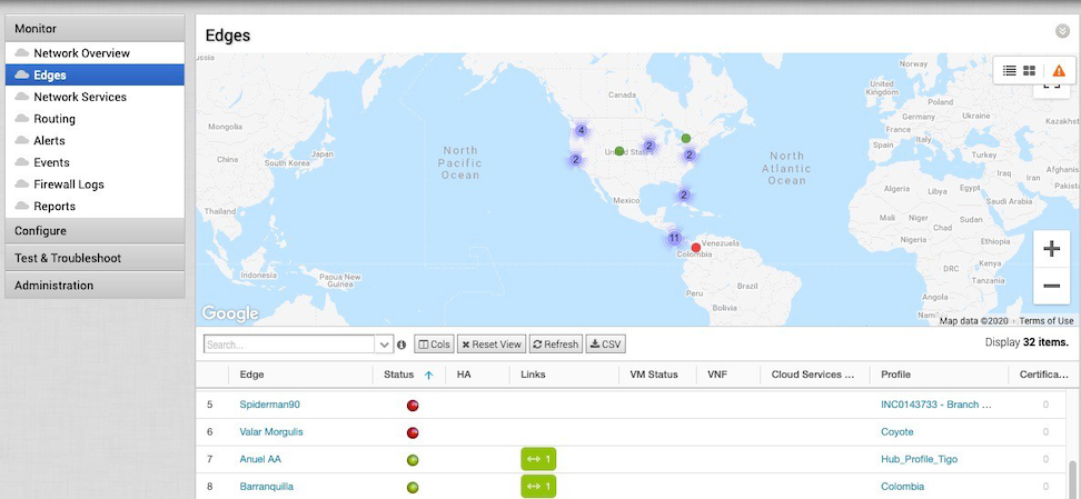 Log into the Orchestrator and verify the Edges are present with a green status icon displayed next to them.