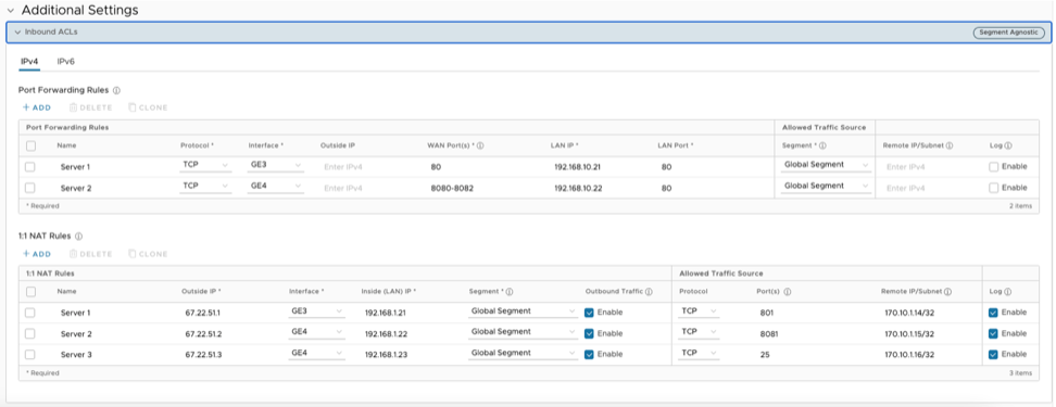 Figure 4. 1:1 NAT and Port Forwarding Configuration