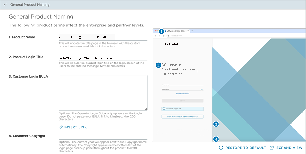 | Customer Login EULA | This is optional. Add your Customer login EULA with a maximum of 200 characters. The Customer login EULA only appears on the login screen.