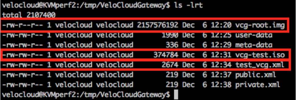 | KVM | Gateway qcow2 disk image. | velocloud-vcg-X.X.X-GA.qcow2 |