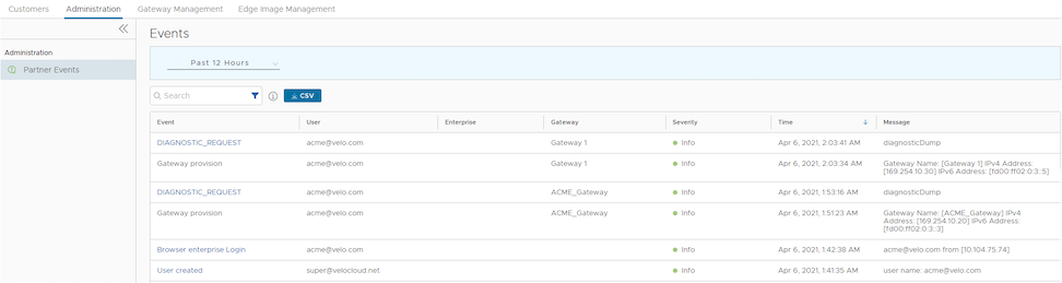 Login to the SASE Orchestrator as a Partner and select to view the events.