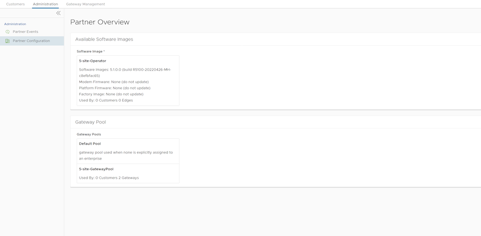 To assign the software images and Gateway pools to a customer, see Create New Partner Customer and Configure Partner Customers.